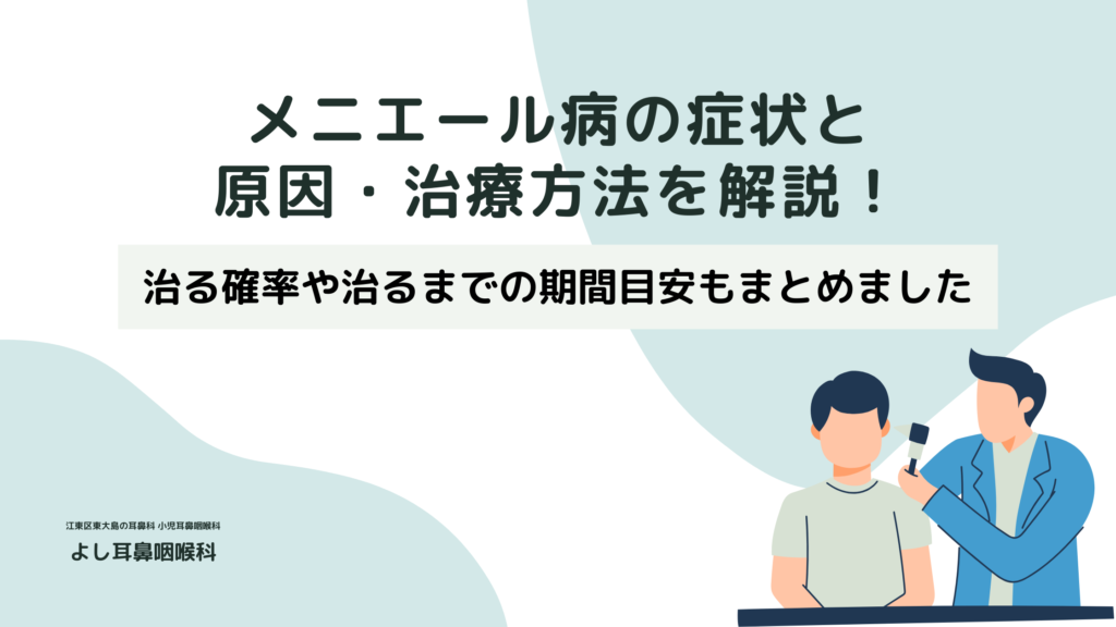 この記事では、メニエール病の症状や原因・治療方法など解説し、治療にどのくらい期間がかかるのかわかりやすく解説しています。